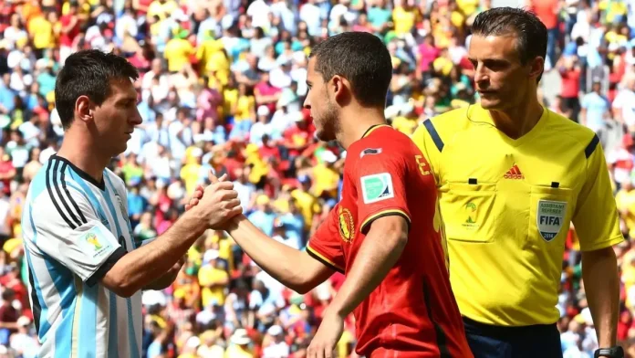 Belgiens körning slutade i kvartfinalen med en förlust av Messis Argentina, males Hazard hade inga ånger. ”För oss var kvartfinalen redan bra. När folks säger kvartfinalen menar de att du förlorar mot Messis crew. Så det finns ingen skam i det. Du spelar mot Messi, historiens bästa spelare. Det finns ingen skam i det. ”