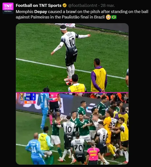 Med klockan avveckling och korinter som ville skydda sin ledning, befann sig Depay nära hörnflaggan i den 89: e minuten. I en dealing with sett av många som showboating eller provokation stod han på bollen—Promping en arg reaktion från Palmeiras -spelare och leder until en kort bråk.